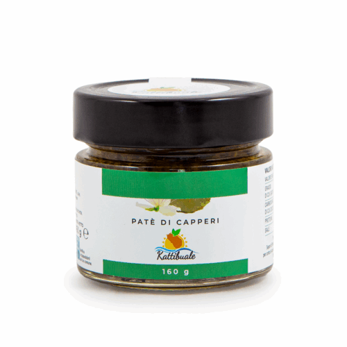 Ingredienti: capperi 40%, olio EVO 30%, pomodoro secco 20%, sale.